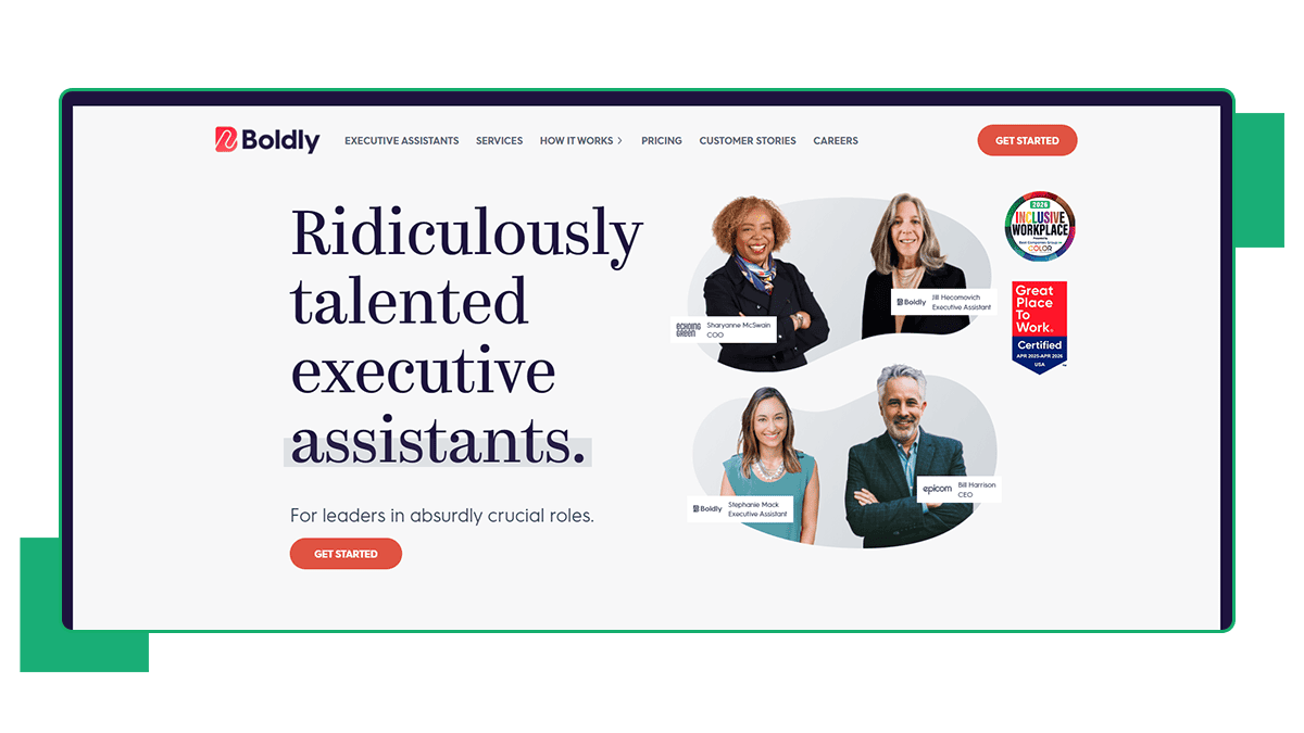 Boldly positions itself as a premier virtual assistant firm for remote staff and fractional leadership. Based in New York, they exclusively hire experienced professionals with 10 to 15 years of experience in senior corporate roles. The company treats its assistants as W-2 employees, resulting in exceptionally high retention rates.
